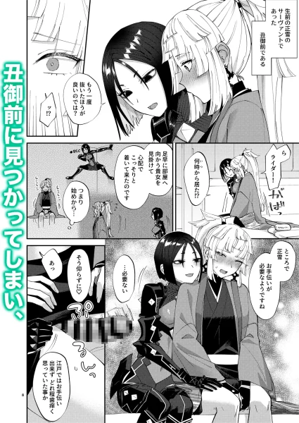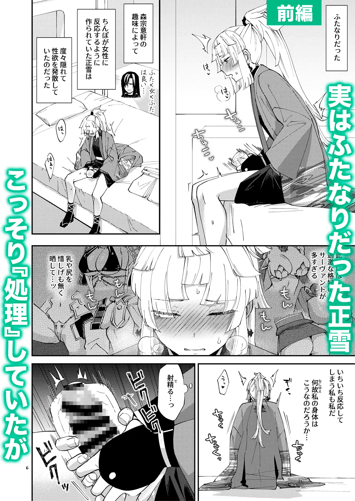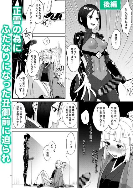 FGOの丑御前×正雪のふたなり百合エロ本です。ふたなり女が性欲の発散をさせられる話と、ふたなりになった女にちんぽの扱い方を教わる話の2話構成。