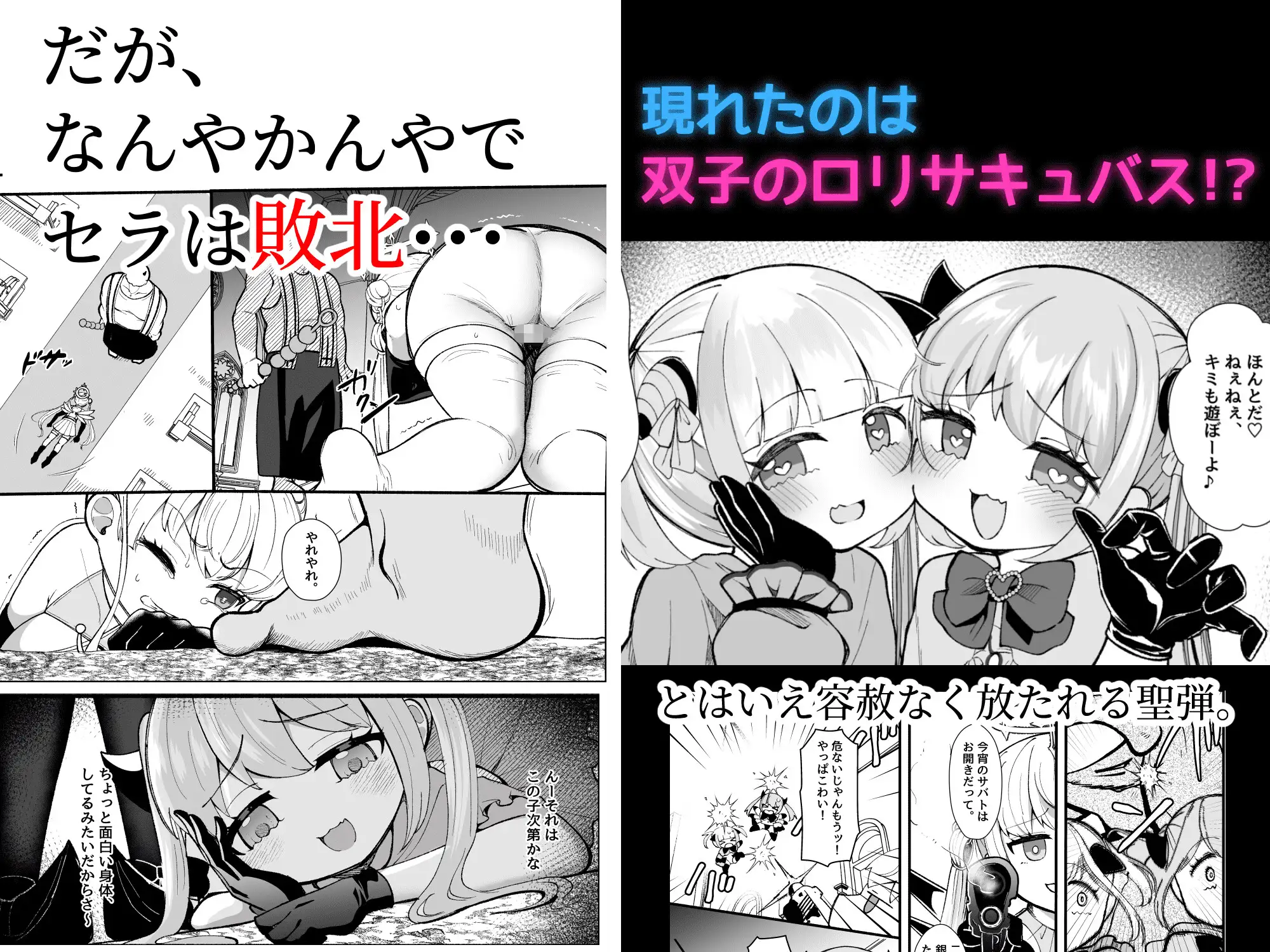 潔癖で清廉なふたなり天使・セラは悪魔退治の任務で訪れた教会跡地で、淫魔の双子に捕らえられる。
